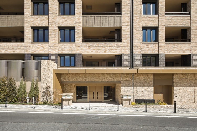 金属の庇と自然石が織りなす、シャープで洗練されたエントランスが、人々を優雅に迎えます。