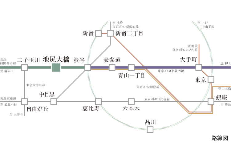 ※「池尻大橋」駅から東急田園都市線利用、「渋谷」駅で東京メトロ半蔵門線に乗り入れ